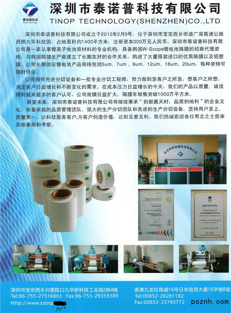 深圳市泰諾普科技有限公司 鋰電池隔膜紙 鋁塑膜 改性無紡布隔膜點擊:643 查看原圖![]() ![]() ![]() 咨詢熱線