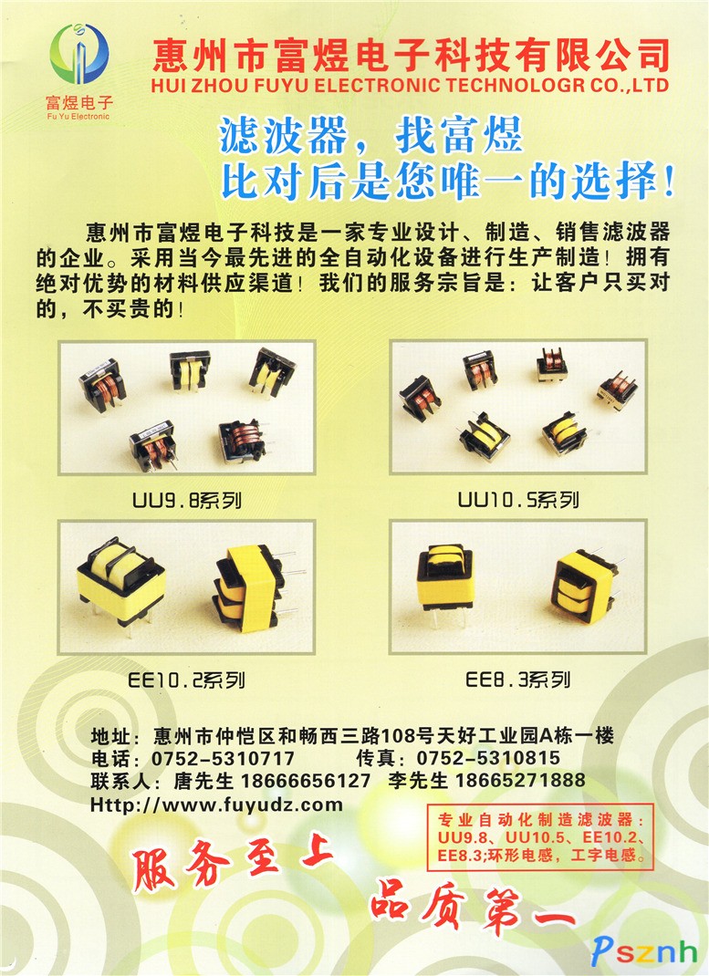 惠州市富煜電子科技有限公司 變壓器 濾波器點擊:796 查看原圖![]() ![]() ![]() 地址:惠州市仲愷區(qū)和暢西三路108號天好工業(yè)園A棟一樓