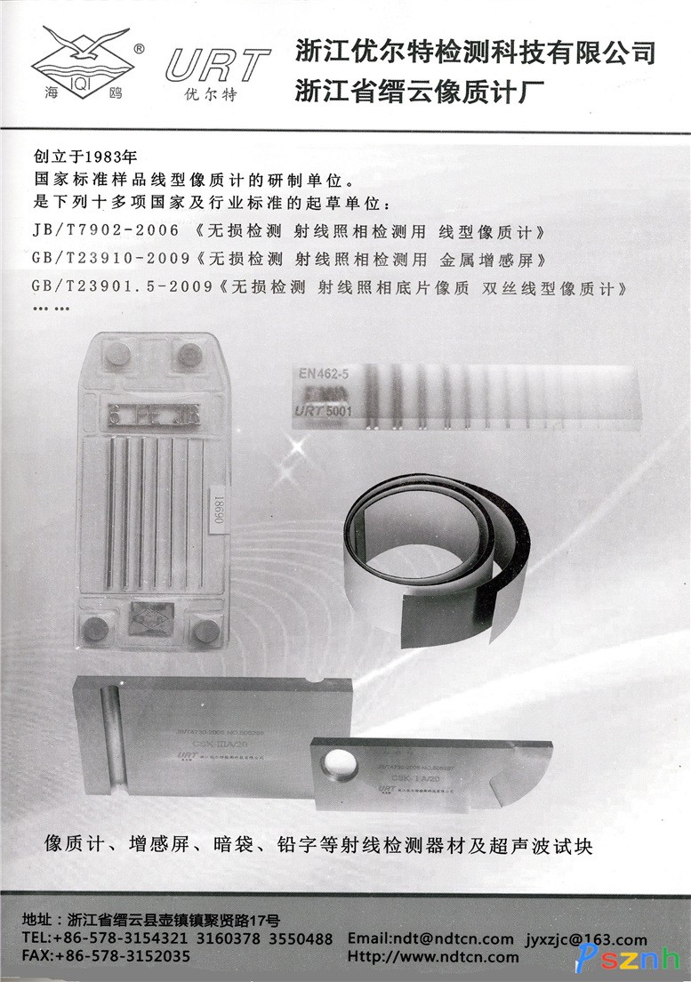 | 經(jīng)營范圍: | 像質(zhì)計(jì)、無損檢測試塊、無損檢測設(shè)備及附件生產(chǎn)、銷售;自營和代理國家準(zhǔn)許的商品及技術(shù)的進(jìn)出口業(yè)務(wù)。(依法須經(jīng)批準(zhǔn)的項(xiàng)目,經(jīng)相關(guān)部門批準(zhǔn)后方可開展經(jīng)營活動(dòng)) | ||