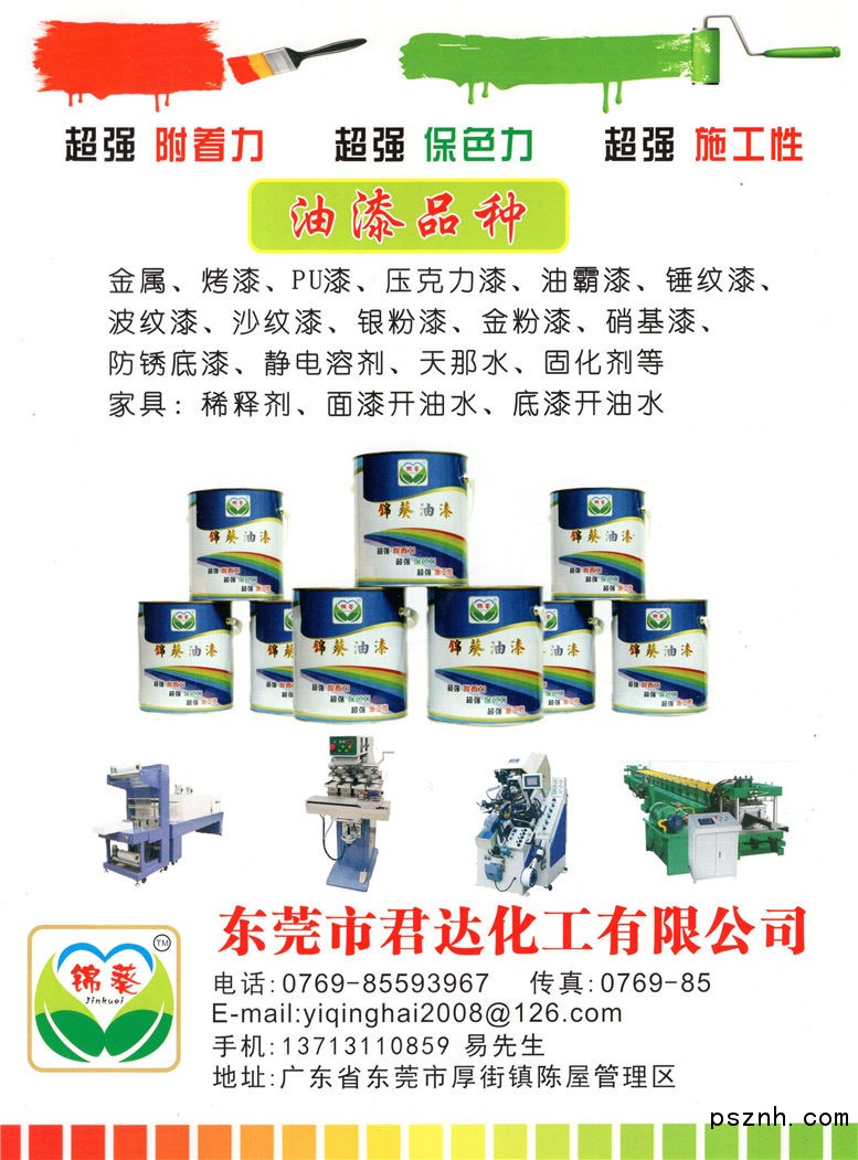 東莞市君達(dá)化工有限公司 化工產(chǎn)品、水性涂料、電子產(chǎn)品、五金產(chǎn)品點(diǎn)擊:533 查看原圖![]() ![]() ![]() 公司地址: