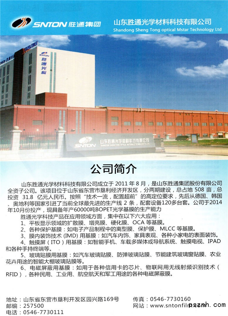| 公司名稱: | 山東勝通光學(xué)材料科技有限公司 | ||
