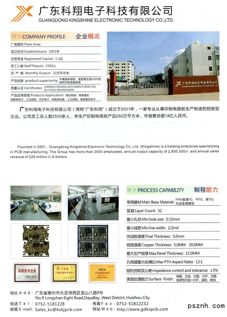 工廠地址:惠州市大亞灣西區(qū)龍山八路9號 工廠電話:+86-752-5181228 工廠傳真:+86-752-5181223 E-mail:sales_kx@kxkjpcb.com |