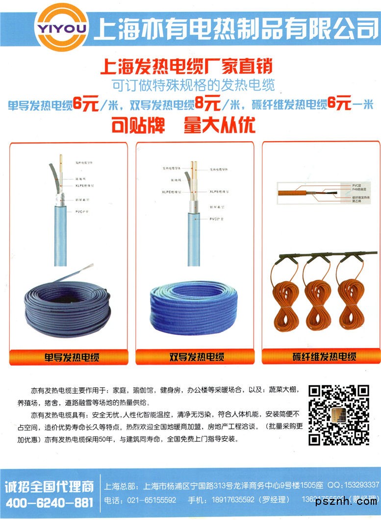 | 經(jīng)營范圍: | 電線電纜制造、加工(以上限分支機(jī)構(gòu)經(jīng)營)、批發(fā)、零售,從事電熱科技領(lǐng)域內(nèi)技術(shù)開發(fā),暖通設(shè)備、金屬材料、制冷設(shè)備、五金交電、建筑材料、包裝材料、發(fā)熱電纜、碳纖維發(fā)熱線的批發(fā)、零售,水暖電安裝建設(shè)工程作業(yè)?!疽婪毥?jīng)批準(zhǔn)的項目,經(jīng)相關(guān)部門批準(zhǔn)后方可開展經(jīng)營活動】 | ||