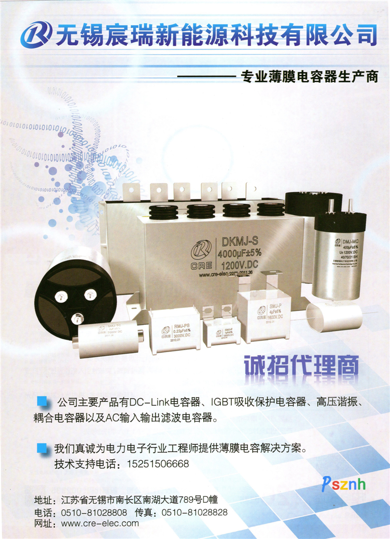 無錫宸瑞新能源科技有限公司 薄膜電容器 電力電子點(diǎn)擊:1493 查看原圖![]() ![]() ![]() 址:無錫市南長區(qū)南湖大道789號D幢