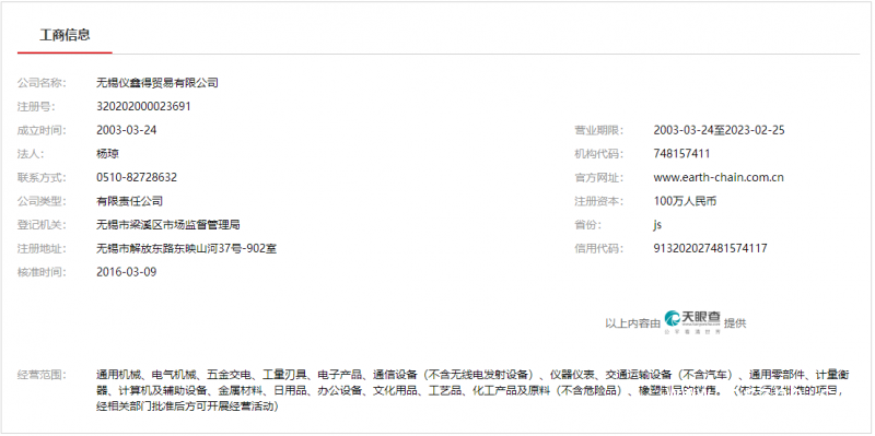 | 公司名稱: | 無錫儀鑫得貿(mào)易有限公司 | ||