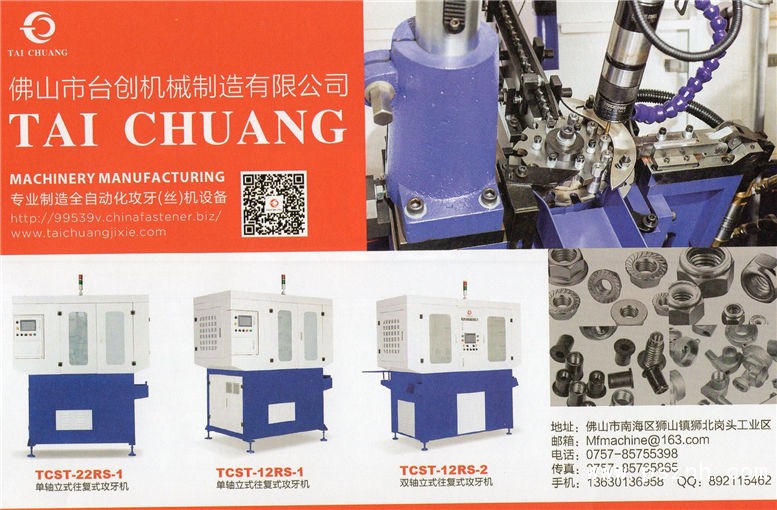 | 公司簡(jiǎn)介: | 佛山市臺(tái)創(chuàng)機(jī)械制造有限公司是從事緊固件加工設(shè)備制造的企業(yè)。廠房面積5000平方,專業(yè)生產(chǎn)各類緊固件設(shè)備。