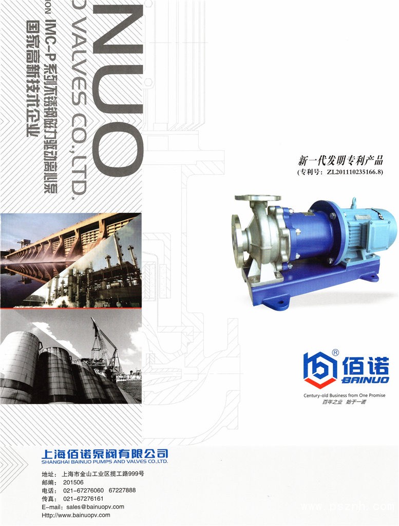 ![]() 佰諾主要生產磁力泵、屏蔽泵、化工泵,自吸泵,隔膜泵,排污泵,管道離心泵等工業(yè)泵,產品具有安全、高效、環(huán)保、節(jié)能的特性,2010年首次打造可連續(xù)空載的磁力泵更是取得歷史性突破,填補了行業(yè)內空白,使磁力泵無液空載運行成為可能,佰諾堅持以“磁力驅動技術,綠色捍衛(wèi)化工”的發(fā)展戰(zhàn)略,形成了以自主知識產權為核心的技術體系,擁有發(fā)明專利和實用型專利共計48項,國家高新技術企業(yè),全力打造中國磁力泵第一品牌。