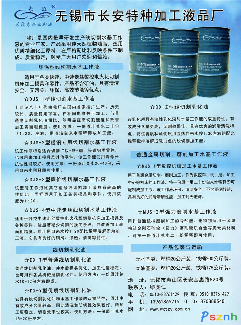 | 公司名稱: | 無(wú)錫市長(zhǎng)安特種加工液品廠 | ||