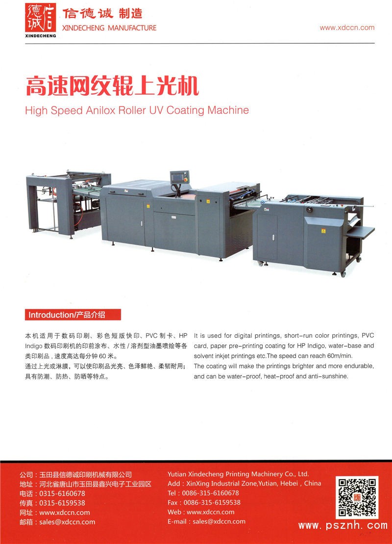 玉田縣信德誠印刷機(jī)械有限公司 數(shù)碼局部UV 上光涂布機(jī) 數(shù)碼模切機(jī)點(diǎn)擊:450 查看原圖![]() ![]() ![]() 電話:0315-6160678 傳真:0315-6159538手機(jī):18631537172網(wǎng)址:www.xdccn.com郵箱:sales@xdccn.com 地址:河北省唐山市玉田縣鑫興電子工業(yè)園區(qū)