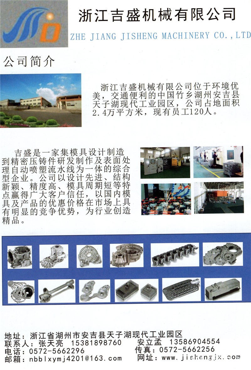 | 經(jīng)營范圍: | 模具、農(nóng)業(yè)種植機械、金屬壓鑄件、燈具、汽車配件制造、銷售;貨物進出口業(yè)務(wù)。 | ||