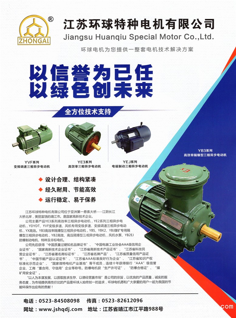 江蘇環(huán)球特種電機有限公司 YE3系列高效率三相異步電動機,YEJ電磁制動三相異步電動機,YDT系列風機泵類負載變極多速三相異步電動機,
