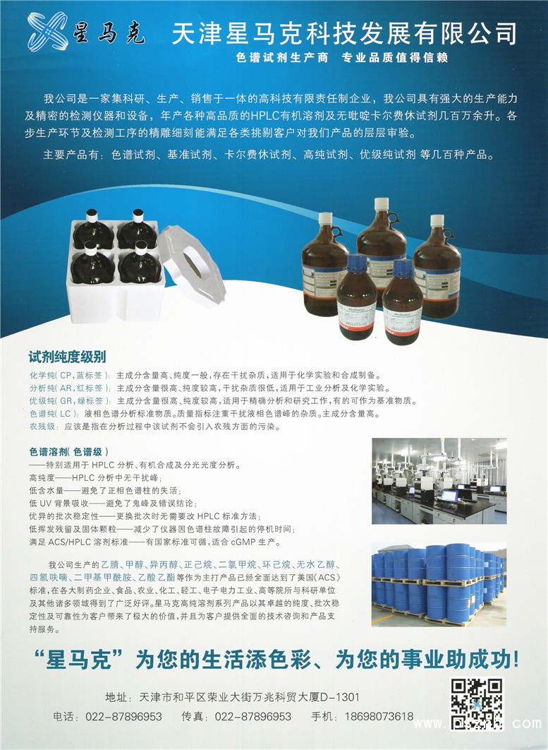 天津星馬克科技發(fā)展有限公司 色譜試劑、基準(zhǔn)試劑、卡爾費(fèi)休試劑、高純試劑、優(yōu)級純試劑等
