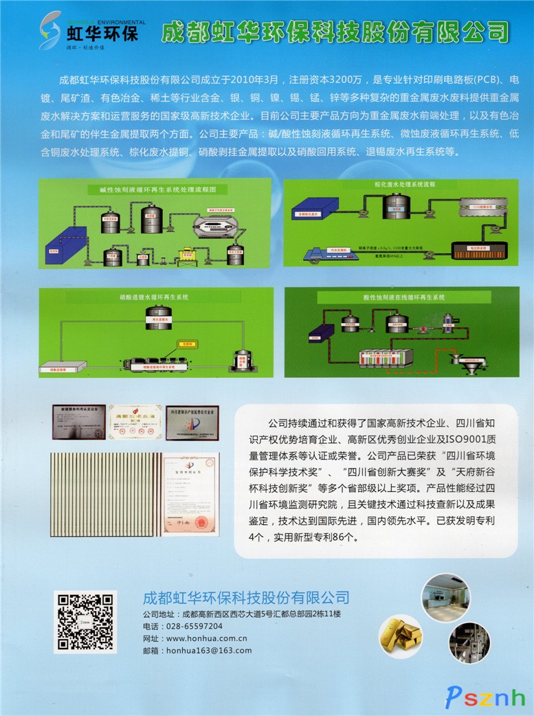 成都虹華環(huán)??萍脊煞萦邢薰? PCB蝕刻液 銅廢水處理點擊:1394 查看原圖![]() ![]() ![]() 公司名稱:成都虹華環(huán)保科技有限公司