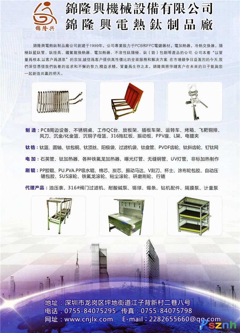 線路板電鍍掛具_(dá)PCB耗材_不銹鋼制品_鈦制品-深圳市錦隆興五金制品有限公司點(diǎn)擊:2451 查看原圖![]() ![]() ![]() 地址:深圳市坪地江子背新村二巷八號(hào)