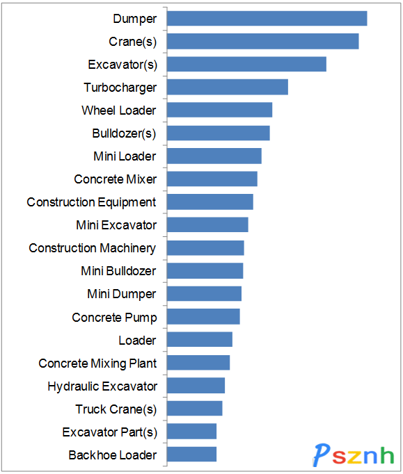 2016年1-3月工程機械行業(yè)最熱門的搜索關(guān)鍵詞為Dumper,其次為Crane(s)和Excavator(s)。