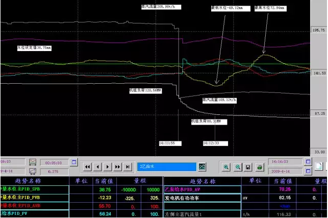 復(fù)雜調(diào)節(jié)系統(tǒng)中前饋信號和反饋信號過強的話會造成系統(tǒng)震蕩,所以調(diào)解過程中不僅僅要注意PID參數(shù)還要注意反饋參數(shù)。尤其在汽包水位二沖量調(diào)節(jié)系統(tǒng)中蒸汽流量和給水流量的信號都要經(jīng)過系數(shù)處理。有些未經(jīng)處理的系統(tǒng),在負(fù)荷波動的時候,就要退掉自動,否則會發(fā)生震蕩的危險。