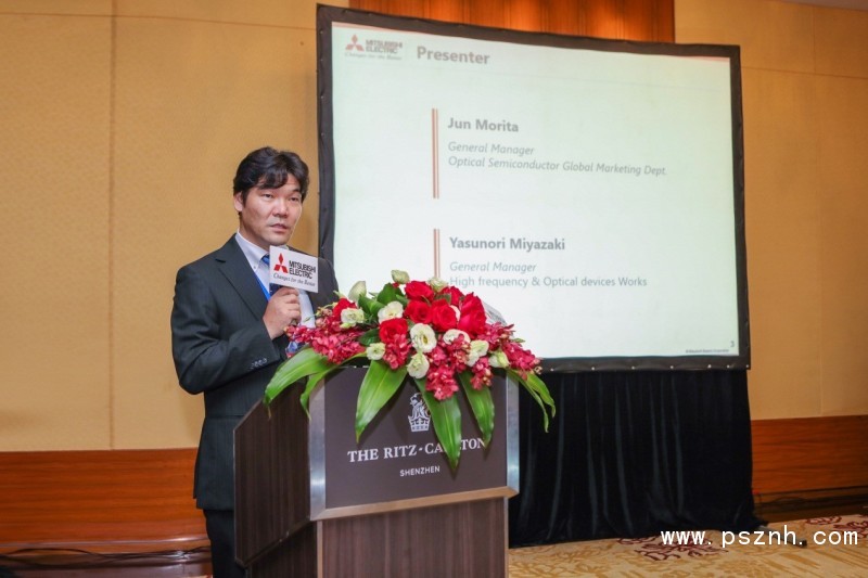 三菱電機(jī)光器件全球市場部總經(jīng)理盛田淳先生、三菱電機(jī)高頻光器件制作所總經(jīng)理宮崎泰典先生、大中國區(qū)三菱電機(jī)半導(dǎo)體技術(shù)副總經(jīng)理庵原晉先生、大中國區(qū)三菱電機(jī)半導(dǎo)體高頻光器件應(yīng)用技術(shù)課經(jīng)理王煒先生、大中國區(qū)三菱電機(jī)半導(dǎo)體公關(guān)宣傳專員葛翌小姐蒞臨此次發(fā)布會(huì)。