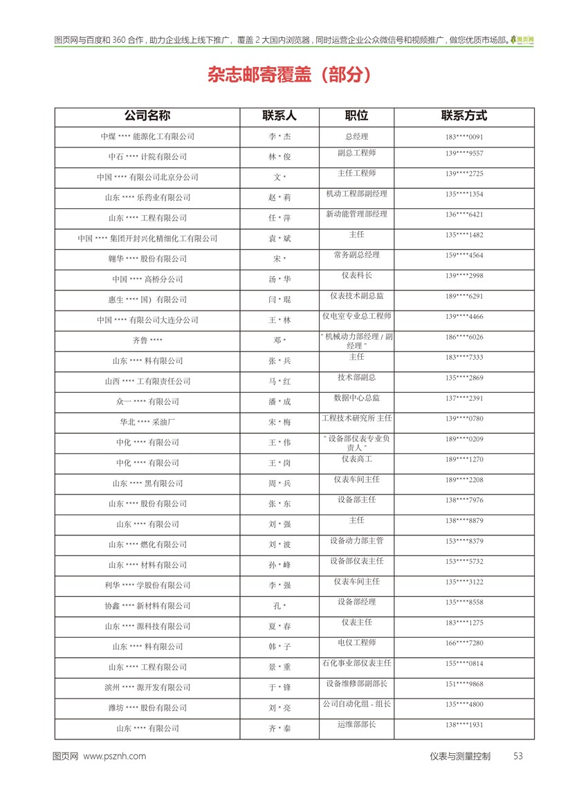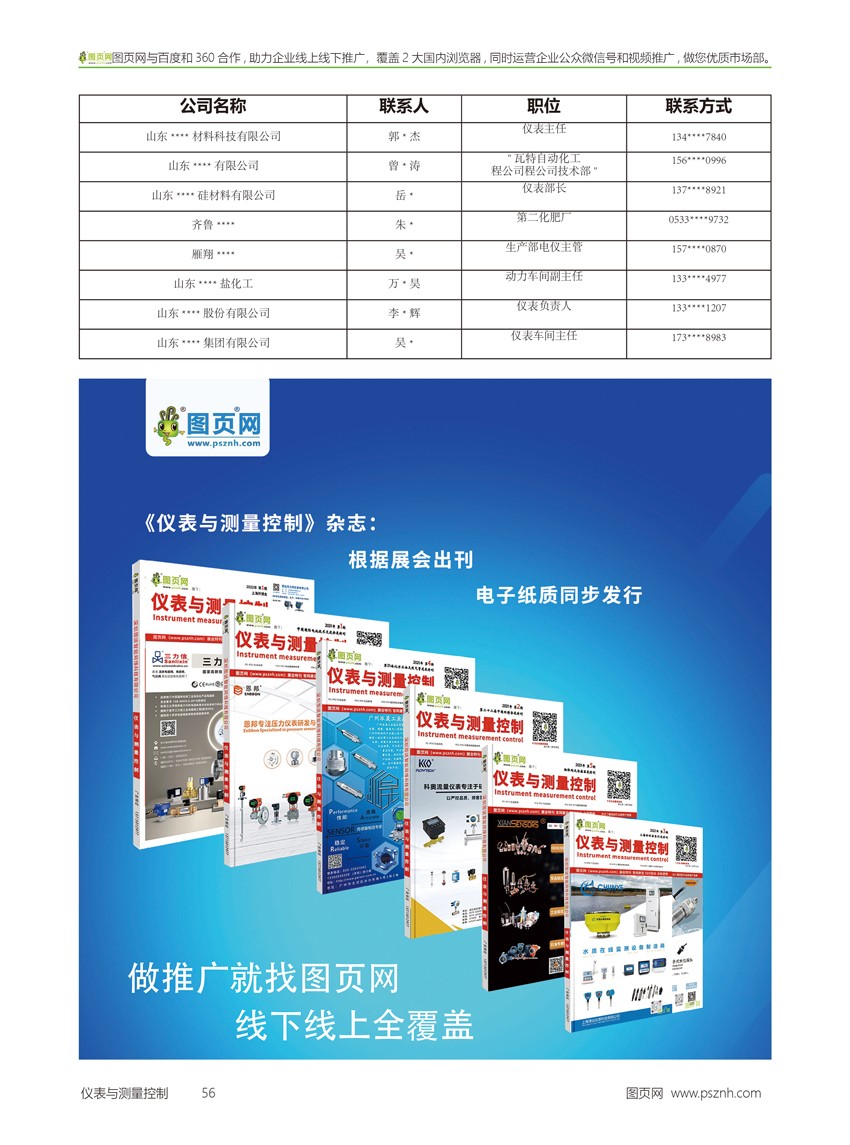 《儀表與測(cè)量控制》部分用戶郵寄名錄,征合寄廠商伙伴(只需快遞費(fèi),每行業(yè)只選一家)