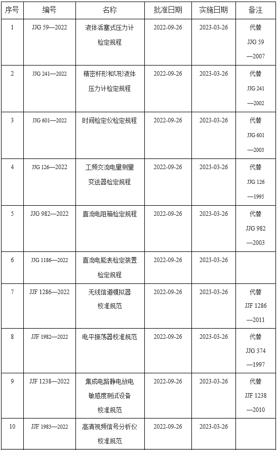 近日,市場(chǎng)監(jiān)管總局發(fā)布2022年第32號(hào)公告,批準(zhǔn)《液體活塞式壓力計(jì)檢定規(guī)程》等24項(xiàng)國(guó)家計(jì)量技術(shù)規(guī)范發(fā)布實(shí)施。