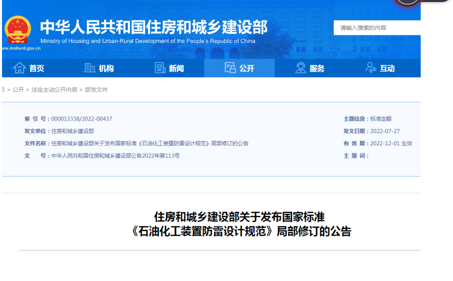 GB50650《石油化工裝置防雷設(shè)計(jì)規(guī)范》局部修訂公告發(fā)布,12月1日起實(shí)施