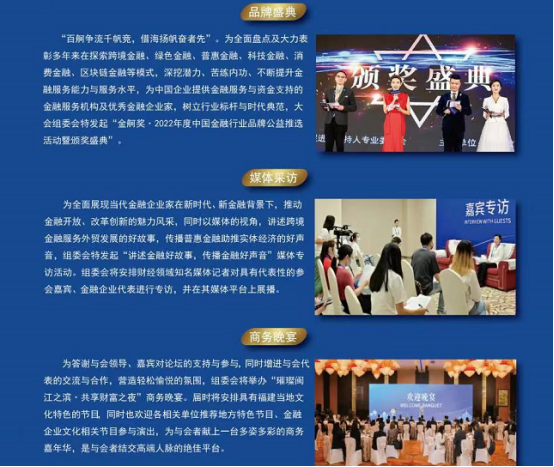 大會(huì)期間特別召開(kāi)金融品牌、產(chǎn)品專(zhuān)場(chǎng)推介會(huì),發(fā)布投融資需求與意向,展示金融企業(yè)發(fā)展成果,為金融企業(yè)對(duì)接政府及企業(yè)資源。
