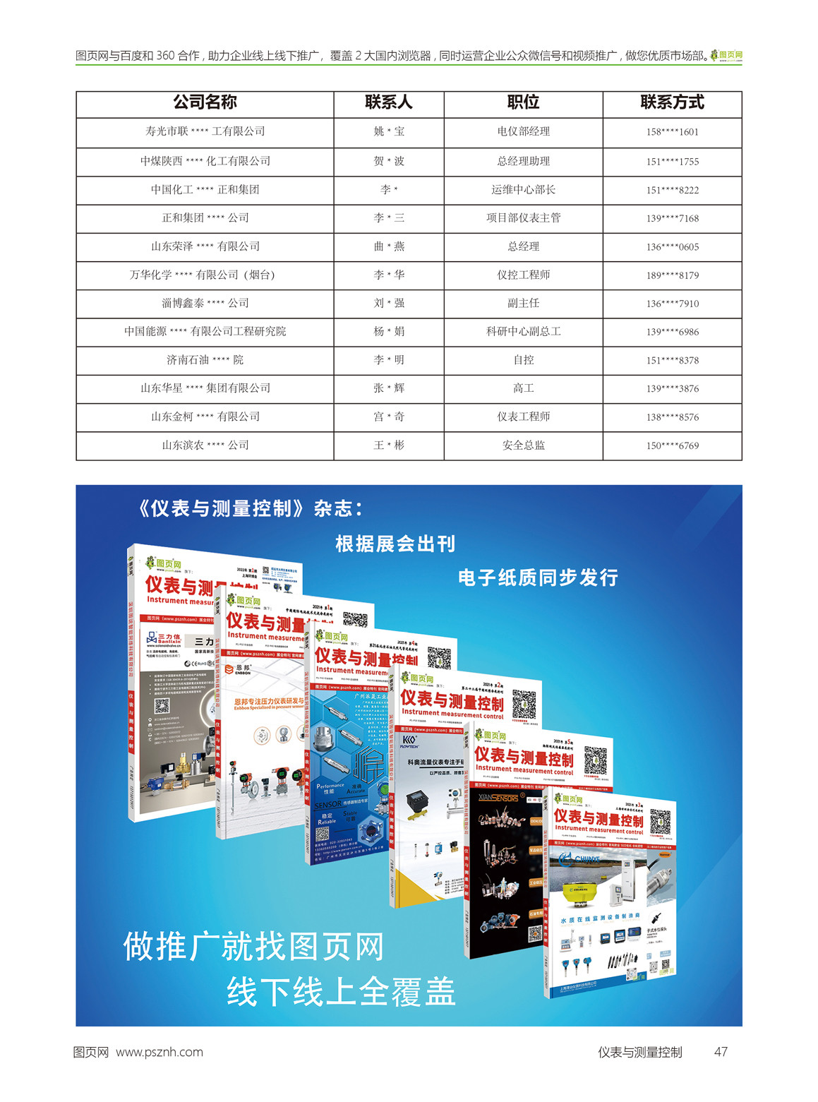 石化與制藥企業(yè)部份郵寄儀表采購商錄2022年第六期《儀表與測量控制》