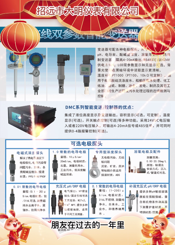 值此2023新春來(lái)臨之際,感謝所有的客戶、合作伙伴,同事以及各位同仁朋友在過(guò)去的一年里對(duì)大明儀表的支持和幫助。在過(guò)去的一年里,面對(duì)新冠疫情和復(fù)雜的國(guó)際環(huán)境,大明儀表在積極配合國(guó)家疫情防控和保證員工身心健康的同時(shí),仍然一貫地堅(jiān)持努力、竭盡全力為客戶提供優(yōu)質(zhì)的產(chǎn)品和服務(wù)。