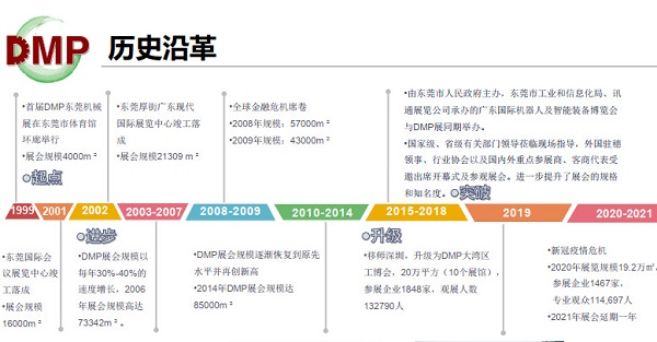 DMP大灣區(qū)工博會由訊通展覽集團(tuán)主辦。展會前身為DMP國際模具、金屬加工、塑膠及包裝展,于1999年創(chuàng)辦, 2019年全面升級為DMP大灣區(qū)工業(yè)博覽會,展會截止目前經(jīng)歷了24年發(fā)展,現(xiàn)已成為工業(yè)制造領(lǐng)域一年一度的專業(yè)展會。