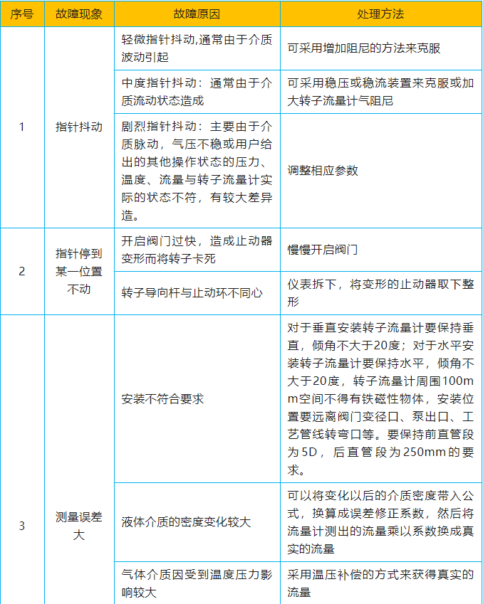 3.轉(zhuǎn)子流量計(jì)常見故障及分析