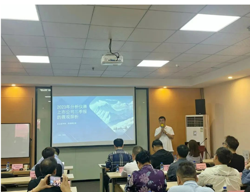 隨后,代理商分會(huì)副理事長(zhǎng)林欣田作了題為“2023年分析儀器上市公司三季報(bào)的微觀探析的分享。他從銷售額、管理與經(jīng)營(yíng)和供應(yīng)鏈三個(gè)方面對(duì)分析儀器產(chǎn)業(yè)鏈相關(guān)的部分上市公司進(jìn)行了深入分析,通過第三季度財(cái)報(bào)數(shù)據(jù)來探究中國(guó)及國(guó)際分析儀器行業(yè)市場(chǎng)的發(fā)展情況及未來前景。
