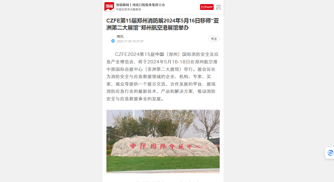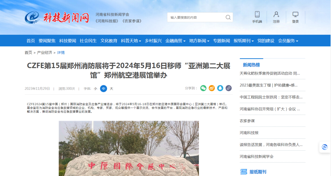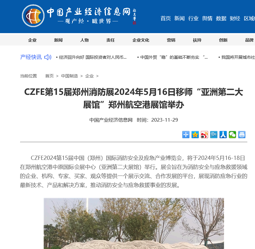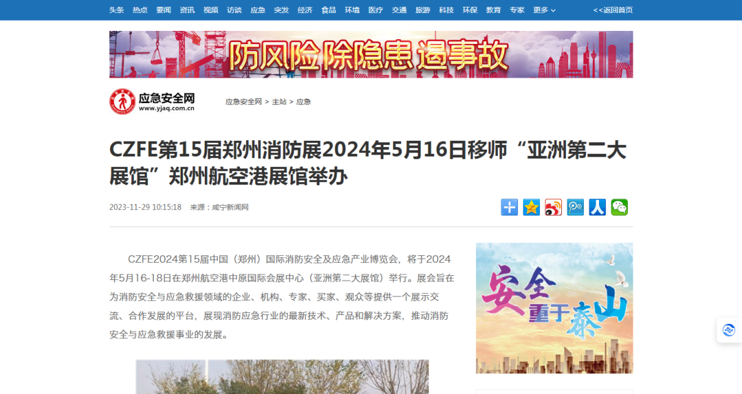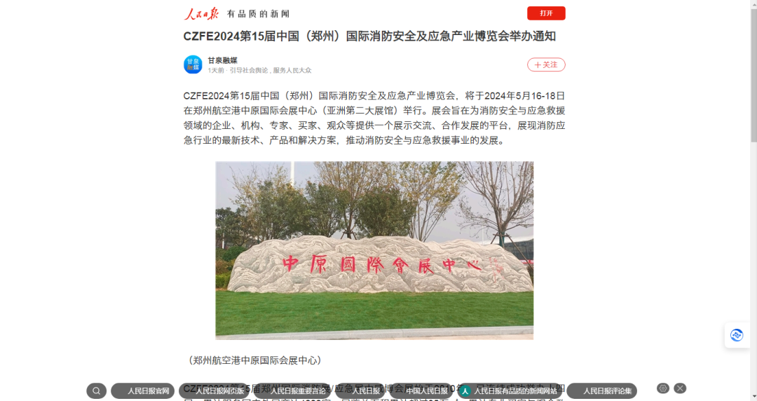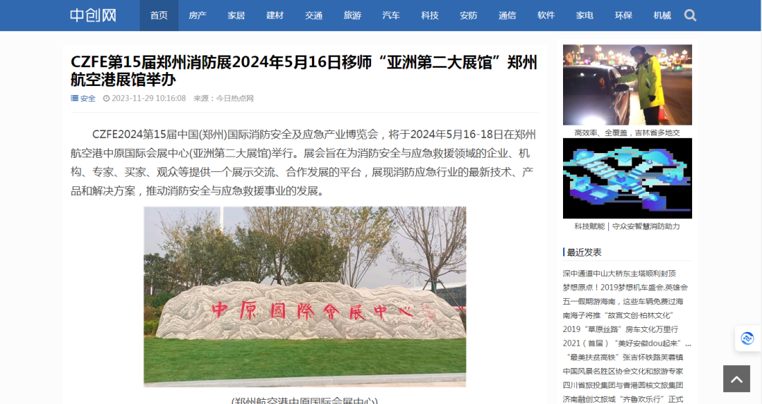 CZFE2024第15屆鄭州國際消防展自啟動籌備至今,受到了媒體行業(yè)廣泛關(guān)注,其中包括中國網(wǎng)應(yīng)急、中國經(jīng)濟(jì)新聞網(wǎng)、鳳凰網(wǎng)商業(yè)、中國日報、新浪新聞、中華網(wǎng)、中國商報、中國發(fā)展網(wǎng)、中國企業(yè)報、網(wǎng)易新聞、大眾網(wǎng)、中國產(chǎn)業(yè)經(jīng)濟(jì)信息網(wǎng)、中宏網(wǎng)、環(huán)球網(wǎng)、中國經(jīng)營網(wǎng)、人民日報客戶端地方號隨機(jī)、企業(yè)觀察報、中國報道、中國財富網(wǎng)、極客網(wǎng)、頂端新聞(新堯網(wǎng))、中原新聞網(wǎng)、河南廣電網(wǎng)、鄭州新聞網(wǎng)、科技新聞網(wǎng)(河南科技報)、信陽日報、商都網(wǎng)、中原傳媒網(wǎng)、中華經(jīng)濟(jì)發(fā)展網(wǎng)、《消費界》河南、《大眾商報》河南、印象河南網(wǎng)、焦作網(wǎng)、河南網(wǎng)首發(fā)、河南日報客戶端官方(商訊)、商廣網(wǎng)、鄭州經(jīng)濟(jì)發(fā)展網(wǎng)、周口網(wǎng)、消防器材網(wǎng)(消防器材產(chǎn)業(yè)網(wǎng))、中創(chuàng)網(wǎng)安全安防、中國應(yīng)急安全網(wǎng)、中國消防網(wǎng)、中國安防網(wǎng)、安防資訊網(wǎng)、安防知識網(wǎng)、雪球網(wǎng)、今日頭條、搜狐、知乎網(wǎng)、百度、商丘新聞網(wǎng)、中國財經(jīng)時報網(wǎng)、中國焦點日報、時代商業(yè)網(wǎng)、愛云資訊、A5站長網(wǎng)、今報在線、中國消費新聞網(wǎng)等近百余家媒體網(wǎng)站的爭相報道。