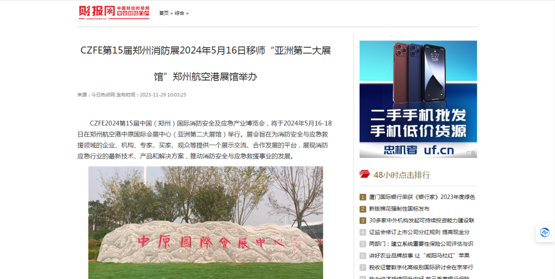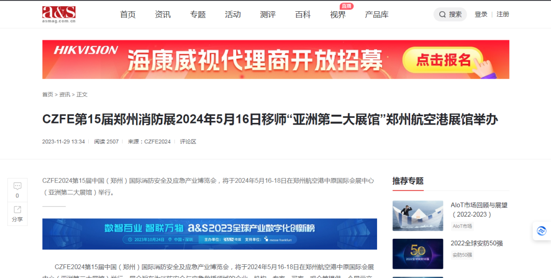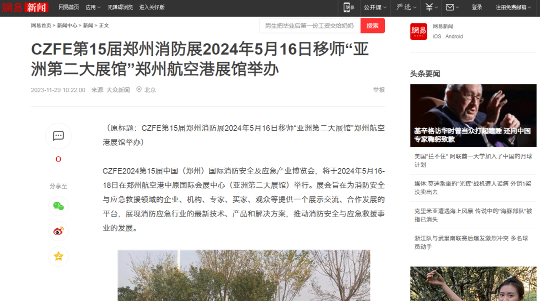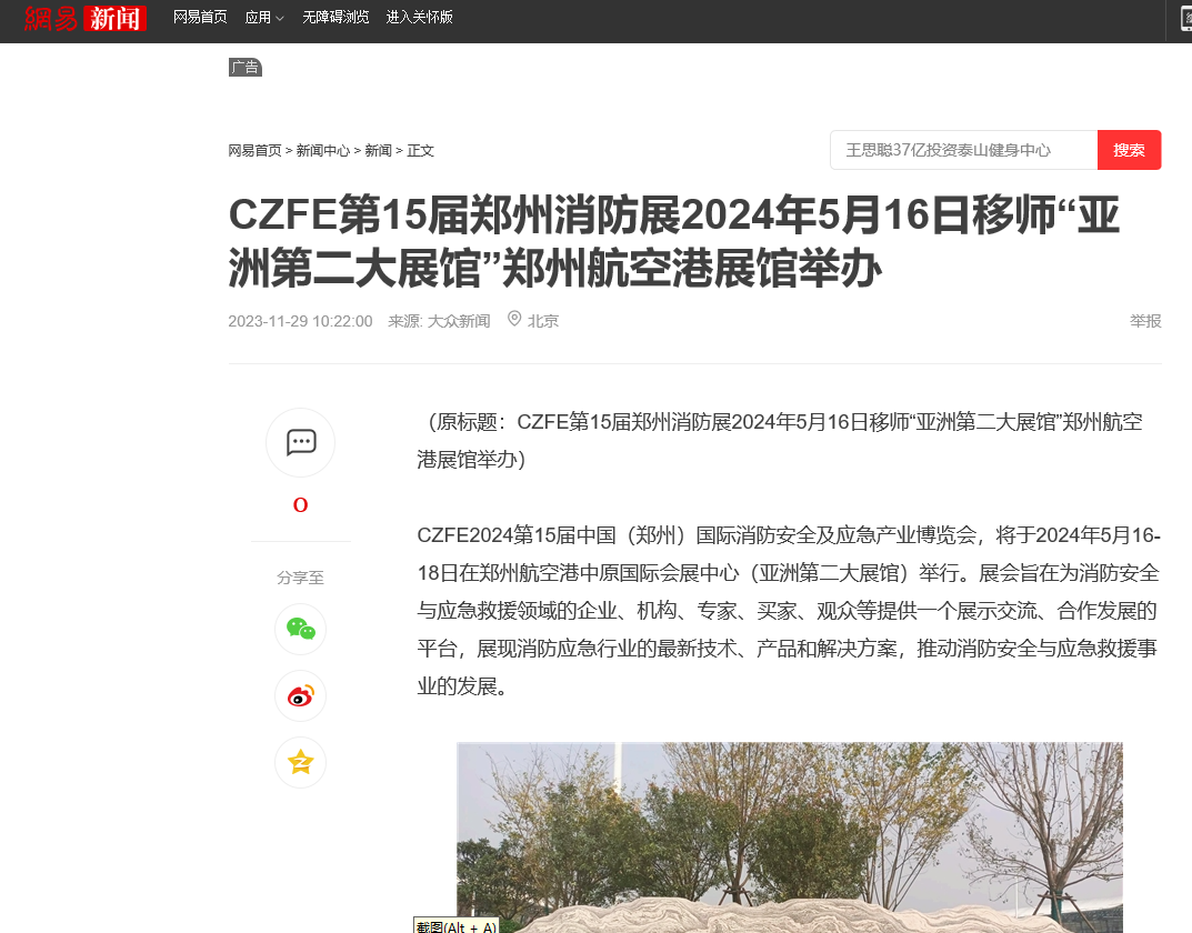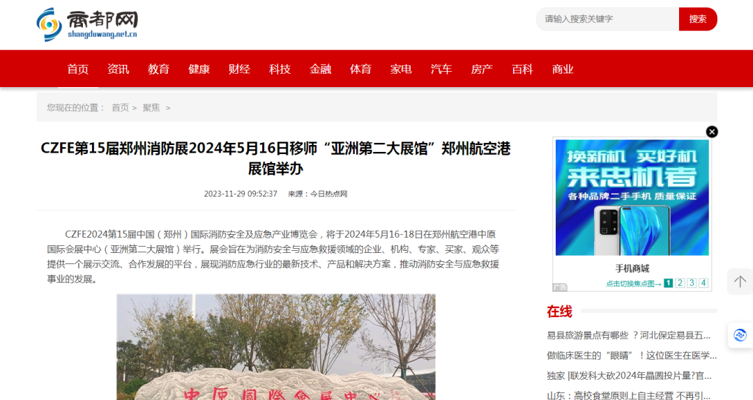 CZFE2024第15屆鄭州國際消防展自啟動籌備至今,受到了媒體行業(yè)廣泛關(guān)注,其中包括中國網(wǎng)應(yīng)急、中國經(jīng)濟(jì)新聞網(wǎng)、鳳凰網(wǎng)商業(yè)、中國日報、新浪新聞、中華網(wǎng)、中國商報、中國發(fā)展網(wǎng)、中國企業(yè)報、網(wǎng)易新聞、大眾網(wǎng)、中國產(chǎn)業(yè)經(jīng)濟(jì)信息網(wǎng)、中宏網(wǎng)、環(huán)球網(wǎng)、中國經(jīng)營網(wǎng)、人民日報客戶端地方號隨機(jī)、企業(yè)觀察報、中國報道、中國財富網(wǎng)、極客網(wǎng)、頂端新聞(新堯網(wǎng))、中原新聞網(wǎng)、河南廣電網(wǎng)、鄭州新聞網(wǎng)、科技新聞網(wǎng)(河南科技報)、信陽日報、商都網(wǎng)、中原傳媒網(wǎng)、中華經(jīng)濟(jì)發(fā)展網(wǎng)、《消費界》河南、《大眾商報》河南、印象河南網(wǎng)、焦作網(wǎng)、河南網(wǎng)首發(fā)、河南日報客戶端官方(商訊)、商廣網(wǎng)、鄭州經(jīng)濟(jì)發(fā)展網(wǎng)、周口網(wǎng)、消防器材網(wǎng)(消防器材產(chǎn)業(yè)網(wǎng))、中創(chuàng)網(wǎng)安全安防、中國應(yīng)急安全網(wǎng)、中國消防網(wǎng)、中國安防網(wǎng)、安防資訊網(wǎng)、安防知識網(wǎng)、雪球網(wǎng)、今日頭條、搜狐、知乎網(wǎng)、百度、商丘新聞網(wǎng)、中國財經(jīng)時報網(wǎng)、中國焦點日報、時代商業(yè)網(wǎng)、愛云資訊、A5站長網(wǎng)、今報在線、中國消費新聞網(wǎng)等近百余家媒體網(wǎng)站的爭相報道。