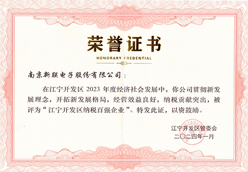 新聯(lián)電子榮獲2023年度“江寧開(kāi)發(fā)區(qū)納稅百?gòu)?qiáng)企業(yè)”