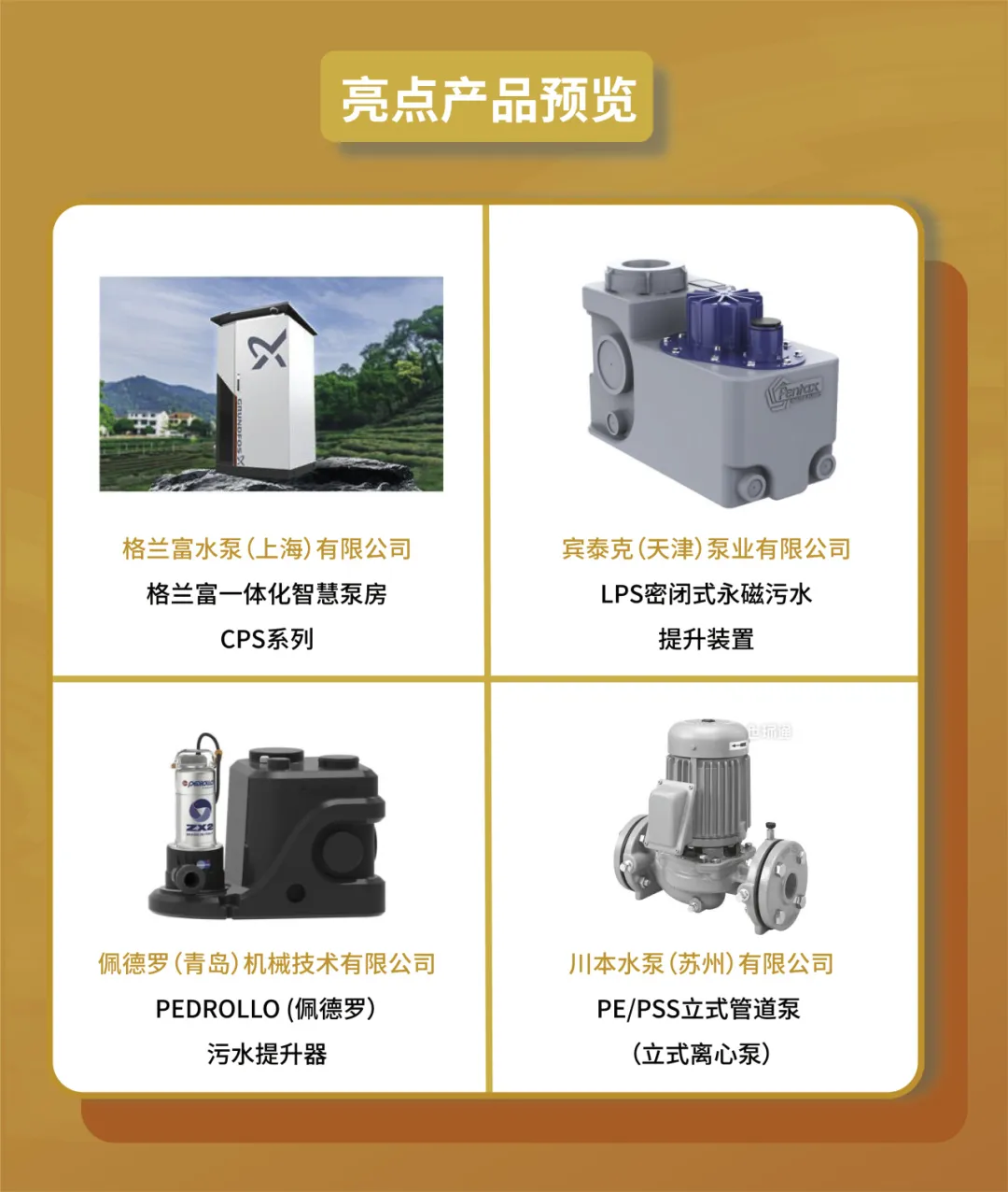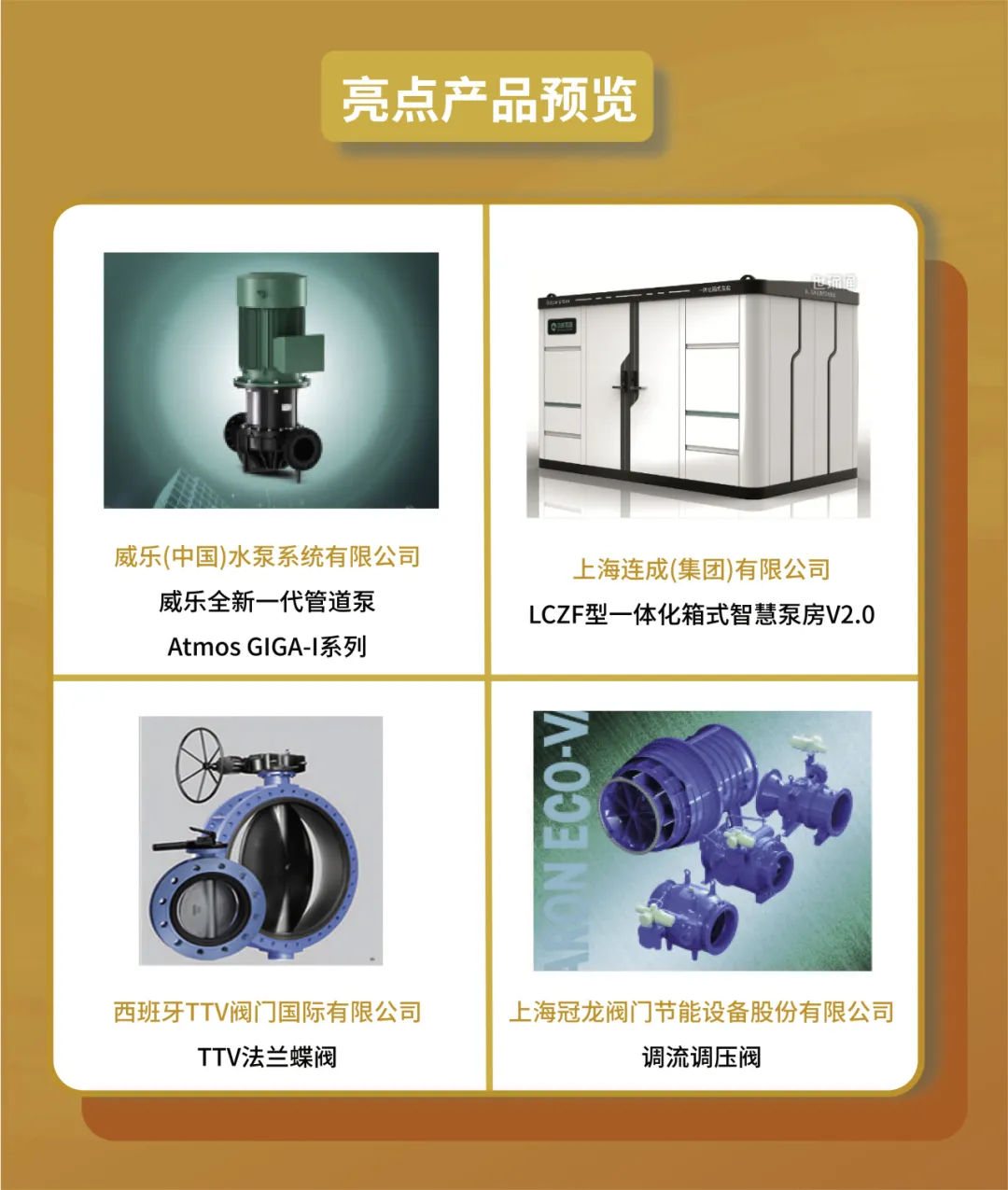 歷時(shí)10余年上海國際泵閥展已成為全球最大的泵管閥展覽會,是泵閥人的首選商貿(mào)平臺。第十二屆上海國際泵閥展將于202463-5上海國家會展中心(虹橋)隆重開幕!60,000㎡展示規(guī)模匯聚格蘭富、威樂、凱士比、賽萊默、賓泰克、荏原、佩德羅、杜科、羅瓦迪、澤德、添理仕、何塞、TTV、艾川格、羅托克、+GF、凱泉、連成、利歐、新界、大元、銘星供水、大福、冠龍1200家國內(nèi)外品牌展商,集中展示泵、閥門、智能供水設(shè)備、排水設(shè)備、管道/管件、執(zhí)行機(jī)構(gòu)、泵管閥配套產(chǎn)品、電機(jī)、直飲水系統(tǒng)等系列產(chǎn)品及技術(shù)解決方案。