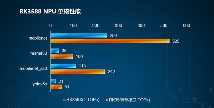 ROM-6881采用Rockchip RK3588處理器,具有4顆Arm Cortex-A76, 4顆Arm Cortex-A55內(nèi)核,擁有強(qiáng)大的計(jì)算處理能力。其內(nèi)建的3核心Rockchip自研第四代NPU,可提供6 Tops INT8 AI算力,支持INT4/INT8/INT16/FP16混合運(yùn)算,輕松轉(zhuǎn)換基于TensorFlow/MXNet/PyTorch/Caffe 等一系列框架的網(wǎng)絡(luò)模型,便捷實(shí)現(xiàn)各種邊緣AI推理運(yùn)算任務(wù)。