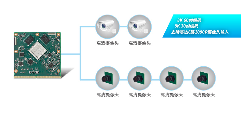 強(qiáng)大視覺處理能力,支持6路以上攝像頭并行輸入,提供多種視頻輸入驗(yàn)證方案
