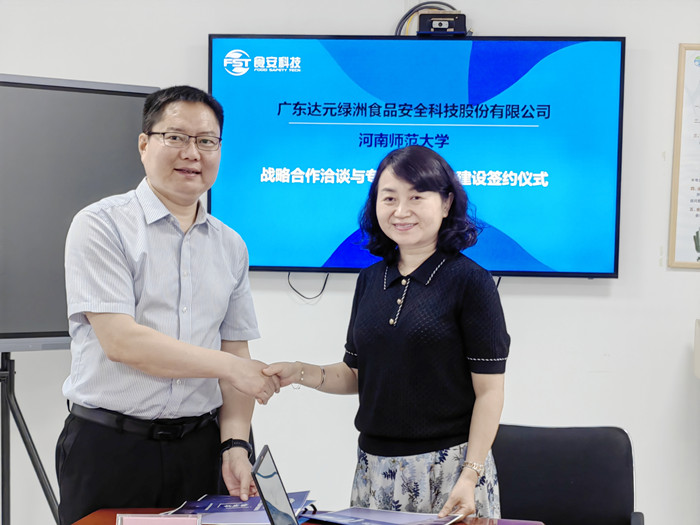 會上,王毅書記介紹了河南師范大學(xué)生科院的基本情況,并期待可以和企業(yè)深度合作,實現(xiàn)人才培養(yǎng)、科研轉(zhuǎn)化、教材開發(fā)等方面的合作,強(qiáng)調(diào)合作的深遠(yuǎn)意義。殷立明副總經(jīng)理介紹達(dá)元綠洲的概況以及產(chǎn)教融合業(yè)務(wù)的情況,她表示公司重視校企合作,并積累了十多年產(chǎn)教融合成果,成立專業(yè)團(tuán)隊,為學(xué)校提供更優(yōu)質(zhì)的服務(wù)。公司去年與華南農(nóng)業(yè)大學(xué)及深圳職業(yè)技術(shù)大學(xué)牽頭成立食品安全行業(yè)產(chǎn)教融合共同體,成員130多個,覆蓋了全國29個省市,建立了食品安全行業(yè)生態(tài)圈,為行業(yè)高質(zhì)量發(fā)展助力。