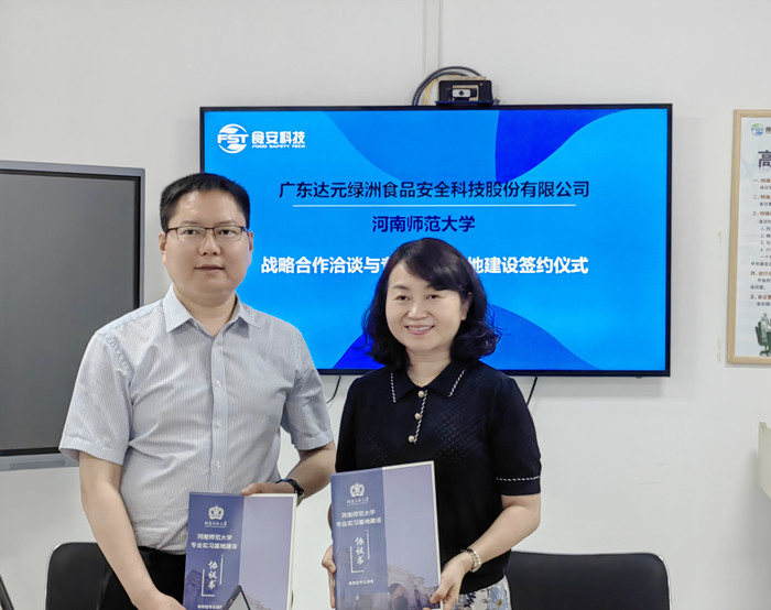 為進(jìn)一步深化校企合作,強(qiáng)化產(chǎn)教融合,促進(jìn)學(xué)校專業(yè)建設(shè)和人才培養(yǎng),落實教育部辦公廳《關(guān)于加快推進(jìn)現(xiàn)代職業(yè)教育體系改革重點任務(wù)的通知》政策文件精神,5月15日,河南師范大學(xué)與廣東達(dá)元綠洲食品安全科技股份有限公司在廣州企業(yè)加速器舉行專業(yè)實習(xí)基地簽署暨授牌儀式。河南師范大學(xué)生科院書記王毅、副書記朱進(jìn)、院長陳建軍、達(dá)元綠洲副總經(jīng)理殷立明、研發(fā)總監(jiān)梁科、凱普生物經(jīng)理屈群峰等出席。
