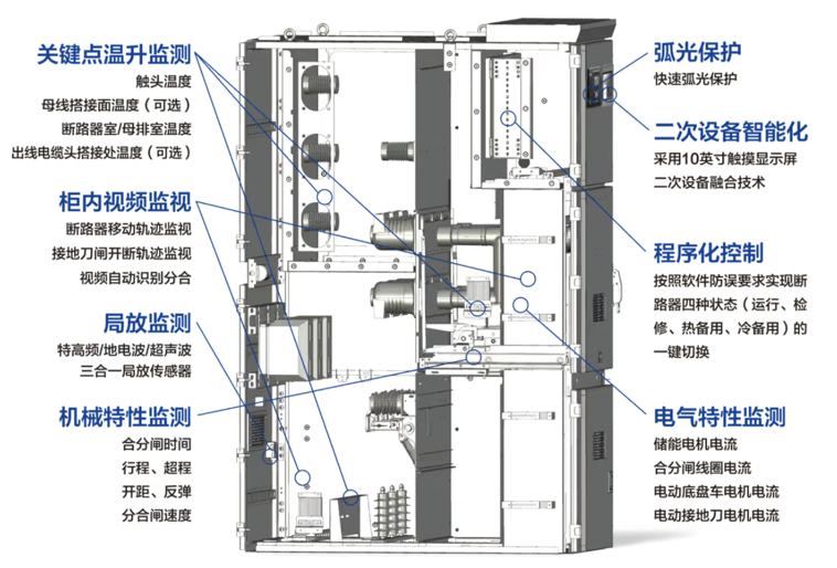 全息感知開關(guān)柜的運(yùn)行狀態(tài),直觀展示,對(duì)故障進(jìn)行預(yù)判和分析,實(shí)現(xiàn)開關(guān)柜的全生命周期管理。