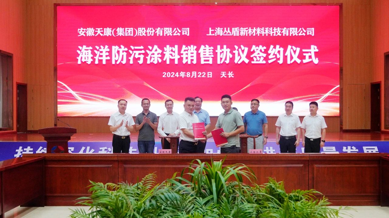 儀式上,安徽天康集團總經理毛文章與上海叢盾新材料科技有限公司總經理劉霖代表雙方簽訂戰(zhàn)略合作協(xié)議書,與會領導共同見證了這一重要時刻。