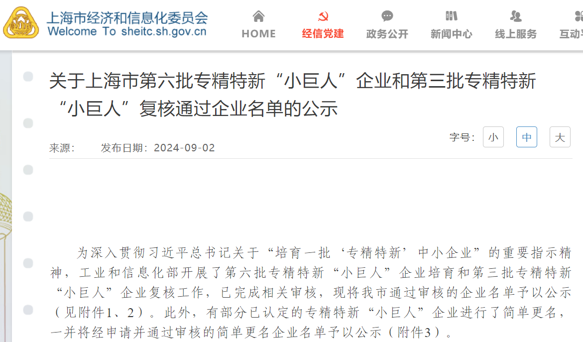 近日,國家工業(yè)和信息化部開展了第六批專精特新“小巨人”企業(yè)培育和第三批專精特新“小巨人”企業(yè)復核工作,上海肯特于2021年榮獲國家專精特新“小巨人”企業(yè)榮譽稱號,三年來憑借卓越的創(chuàng)新實力和穩(wěn)健的發(fā)展態(tài)勢,成功通過復核并予以公示。