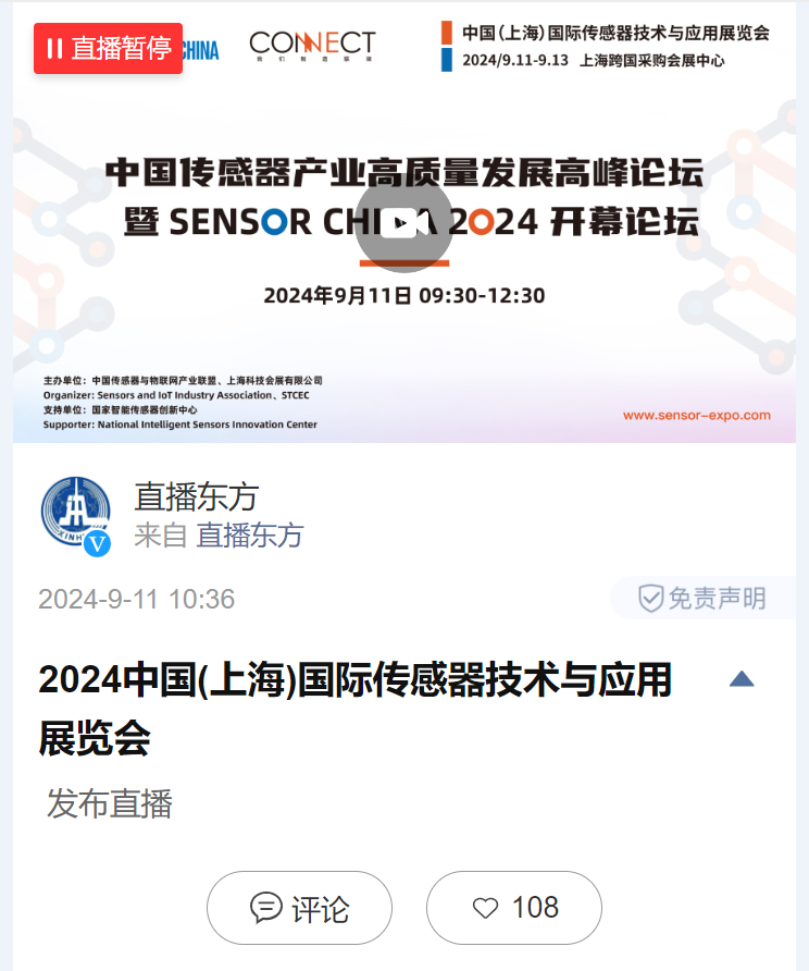 新華社官方直播平臺(tái)“直播東方”對(duì)SENSOR CHINA2024的開幕論壇進(jìn)行了全程直播。