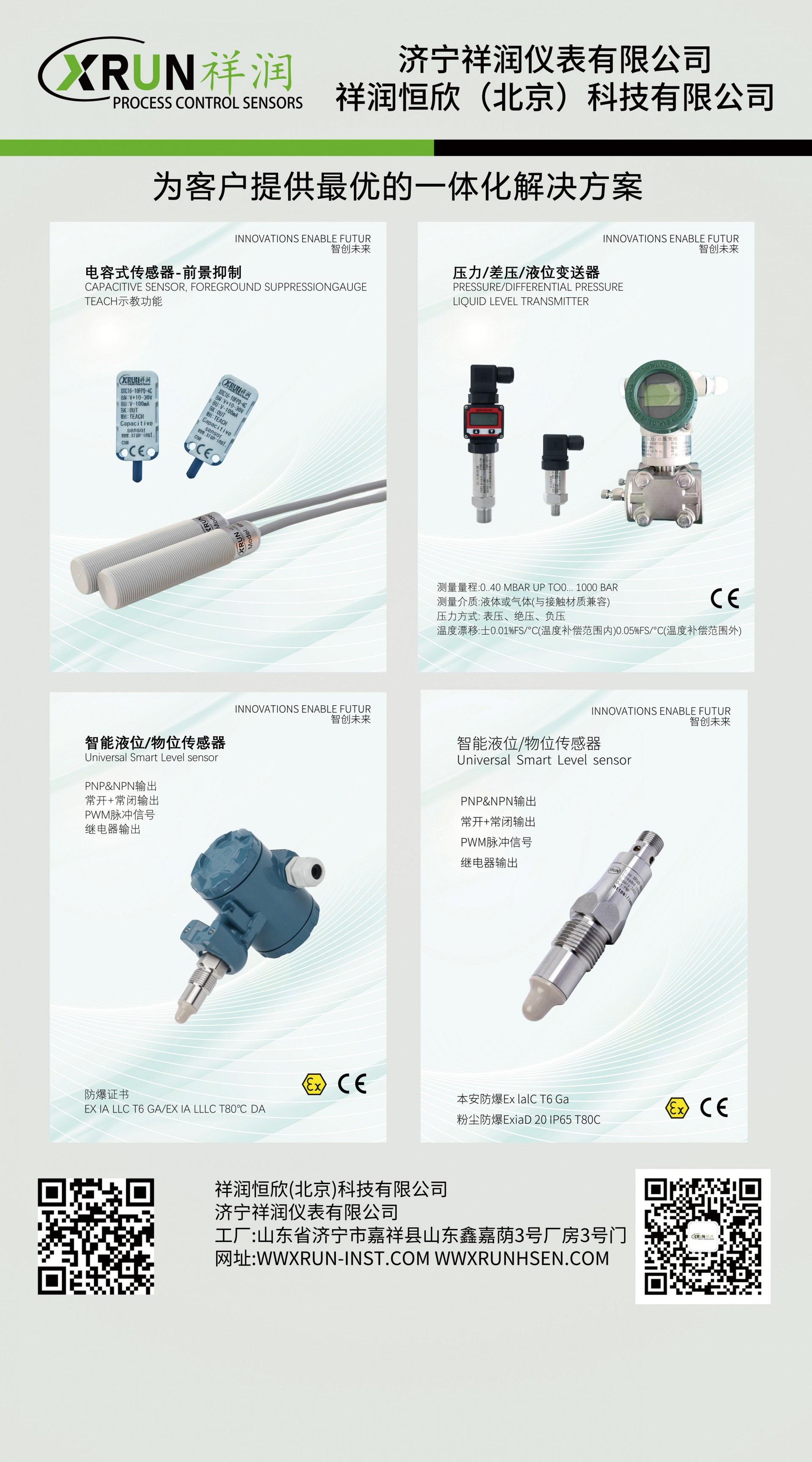 祥潤(rùn)儀表的主要產(chǎn)品液位物位檢測(cè)高端智能傳感器,憑借其卓越的性能特點(diǎn)在眾多行業(yè)中脫穎而出。其抗掛料、耐高 / 低溫、耐油污的特性,使其能夠在復(fù)雜惡劣的工業(yè)環(huán)境中穩(wěn)定運(yùn)行,可輕松應(yīng)對(duì)高粘稠液體漿料、泡沫液體以及粉體物料等特殊介質(zhì)的檢測(cè)挑戰(zhàn),為工業(yè)生產(chǎn)過程中的液位物位精準(zhǔn)監(jiān)測(cè)提供了可靠保障。同時(shí),公司產(chǎn)品具備單路輸出、雙路輸出、脈沖調(diào)制輸出等多種智能輸出模式,可滿足不同客戶的多樣化應(yīng)用需求,為客戶提供更加靈活便捷的解決方案。