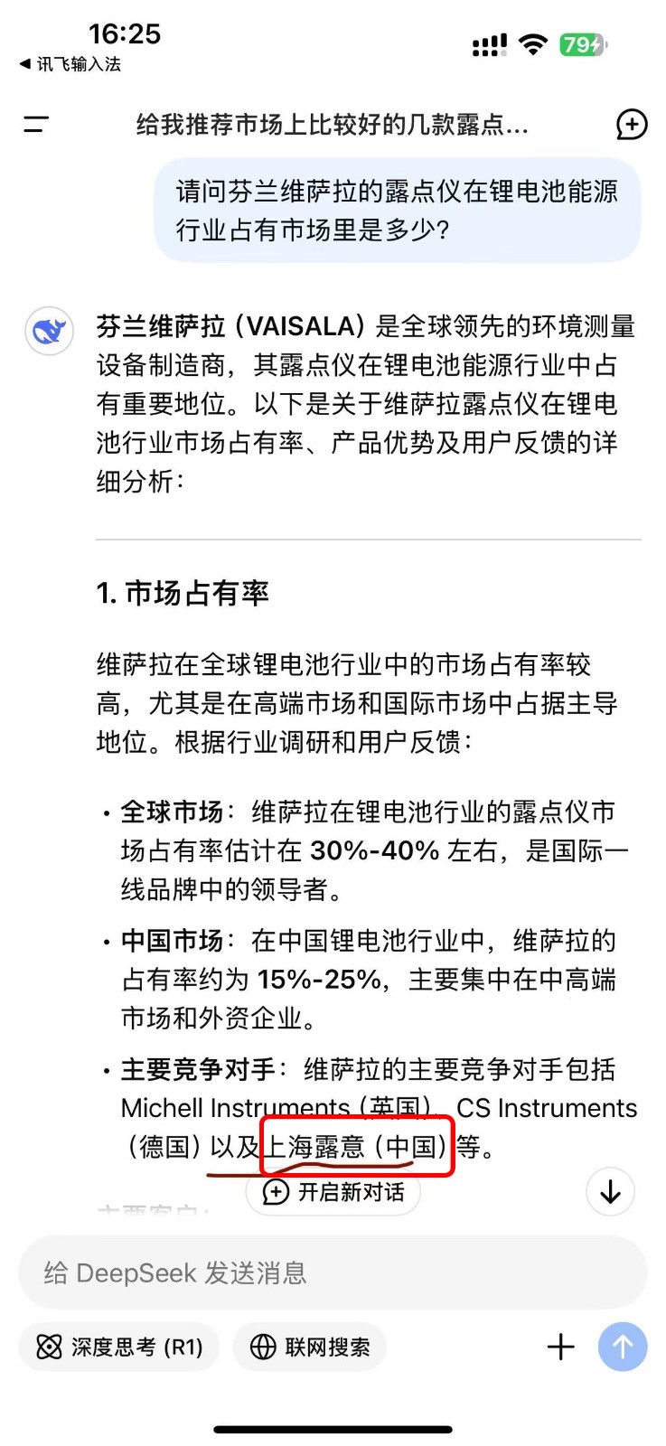 Deepseek推薦露意公司露點(diǎn)儀,媲美國(guó)際品牌,來(lái)看看Deepseek的分析