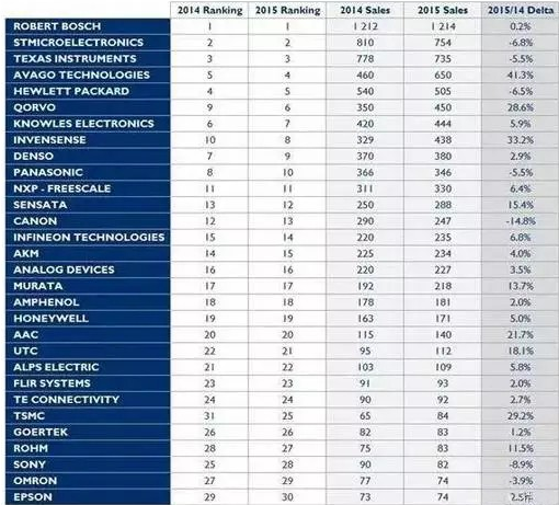 目前,國內(nèi)傳感器市場仍然以外資為主,占比達(dá)到67%。以下為國內(nèi)主流傳感器廠商(含部分外資,排名不分先后):