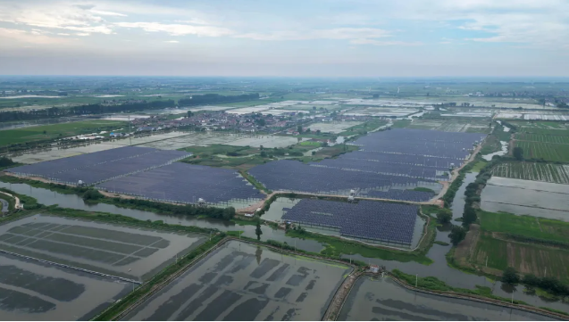 采用“上可發(fā)電、下可養(yǎng)蟹”的漁光互補模式。在水面上鋪設的光伏系統(tǒng)成了天然的遮陽傘,有效抑制藻類過度繁殖,為水下的螃蟹營造了理想的生長環(huán)境。 一畝水塘兩份收入,不僅提高了水土資源利用,還促進了當?shù)亟?jīng)濟的多元化發(fā)展。光伏電站的建設還帶動了周邊地區(qū)的就業(yè)和產(chǎn)業(yè)發(fā)展,一舉多得,是鄉(xiāng)村振興+踐行“雙碳”目標的典型示范項目。