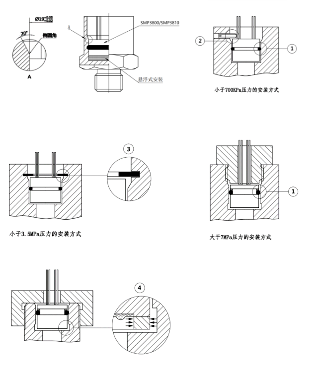 安裝方面,針對不同壓力范圍提供專屬方案,量程<7MPa、≥7MPa 各有適配結(jié)構(gòu),同時附帶詳細(xì)安裝注意事項,從公差配合到操作規(guī)范,全方位確保安裝正確,避免因不當(dāng)操作影響性能。