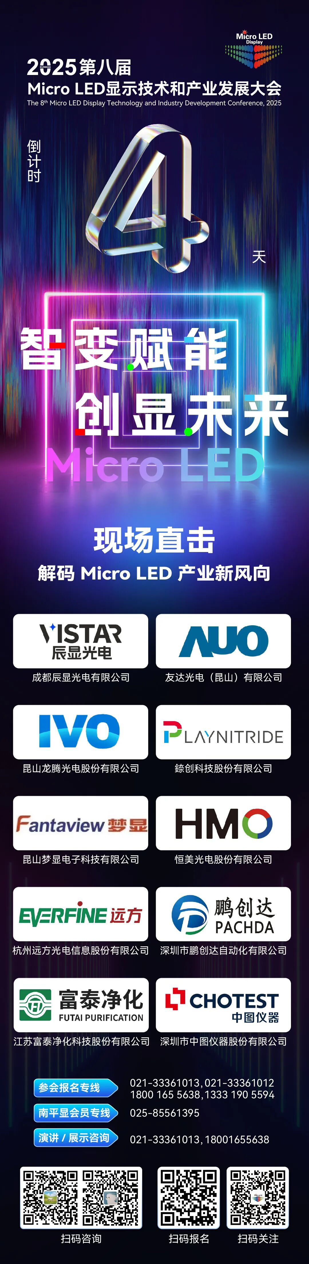 作為 Micro LED 顯示領(lǐng)域年度核心盛會(huì),2025第八屆Micro LED顯示技術(shù)和產(chǎn)業(yè)發(fā)展大會(huì)將于2025年11月5日至7日在蘇州昆山時(shí)代皇冠假日酒店舉行。本次論壇以“智變賦能 創(chuàng)顯未來(lái)”為主題,聚焦量產(chǎn)化關(guān)鍵技術(shù)攻堅(jiān)、終端應(yīng)用場(chǎng)景創(chuàng)新、產(chǎn)業(yè)生態(tài)協(xié)同共生三大方向,搭建“產(chǎn)學(xué)研投用”一體化對(duì)接平臺(tái),共同探討Micro LED關(guān)鍵技術(shù)突破,洞悉市場(chǎng)發(fā)展趨勢(shì)和終端應(yīng)用場(chǎng)景,助力產(chǎn)業(yè)高質(zhì)量發(fā)展。