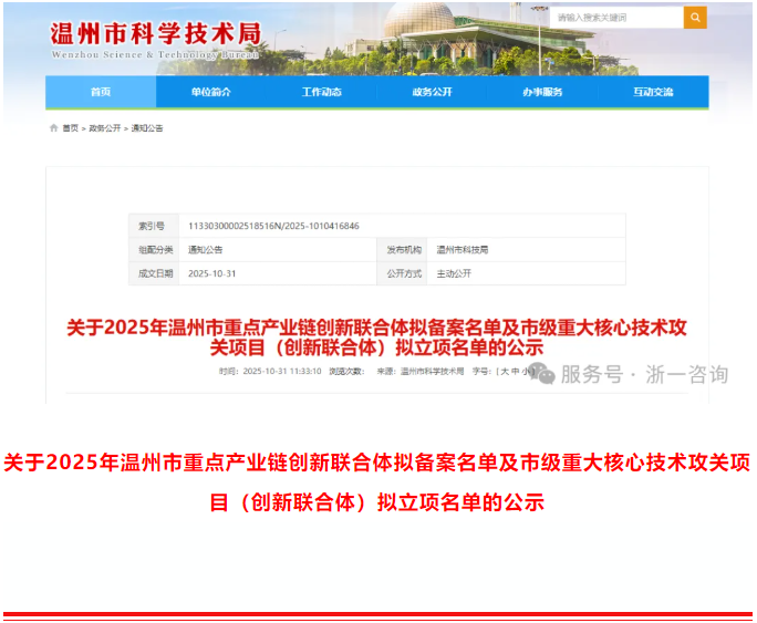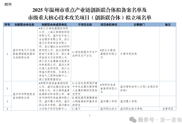 《溫州市 2025 年重點產(chǎn)業(yè)鏈創(chuàng)新聯(lián)合體擬備案與重大攻關(guān)項目擬立項名單公示》