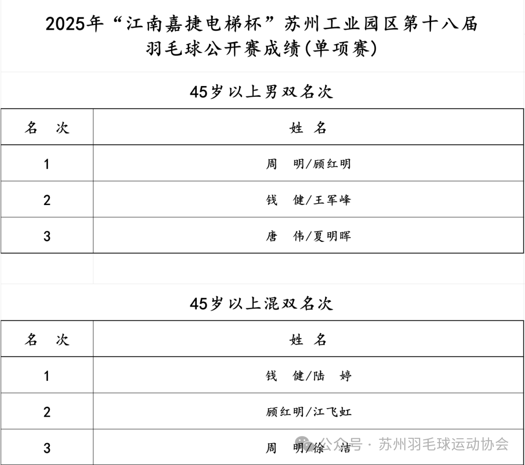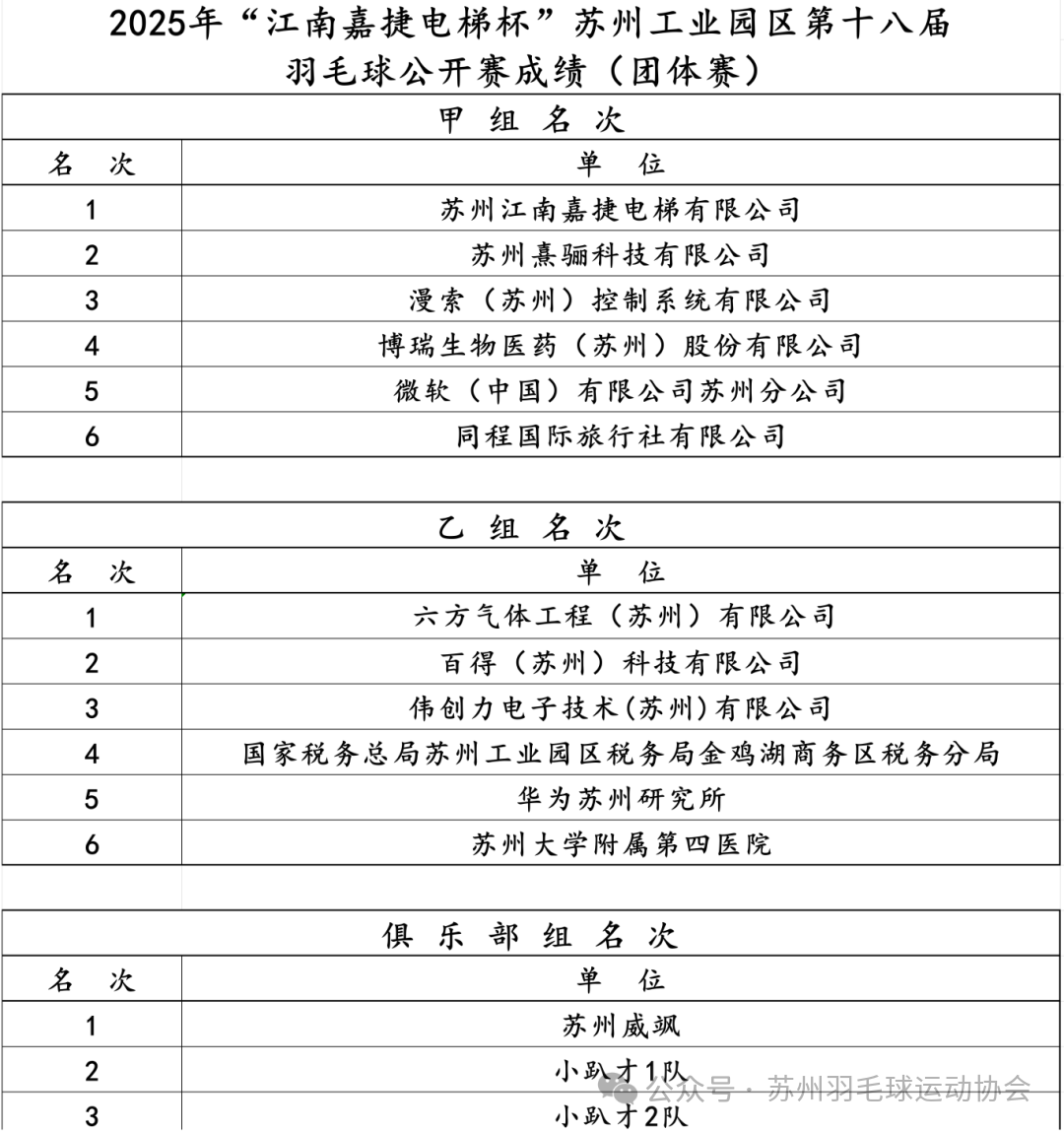 本次賽事的圓滿舉辦,離不開各方的鼎力支持與悉心籌備。特此致謝蘇州獨(dú)墅湖科教創(chuàng)新區(qū)管委會的悉心指導(dǎo)、江南嘉捷電梯的大力支持及市羽協(xié)的專業(yè)協(xié)助。